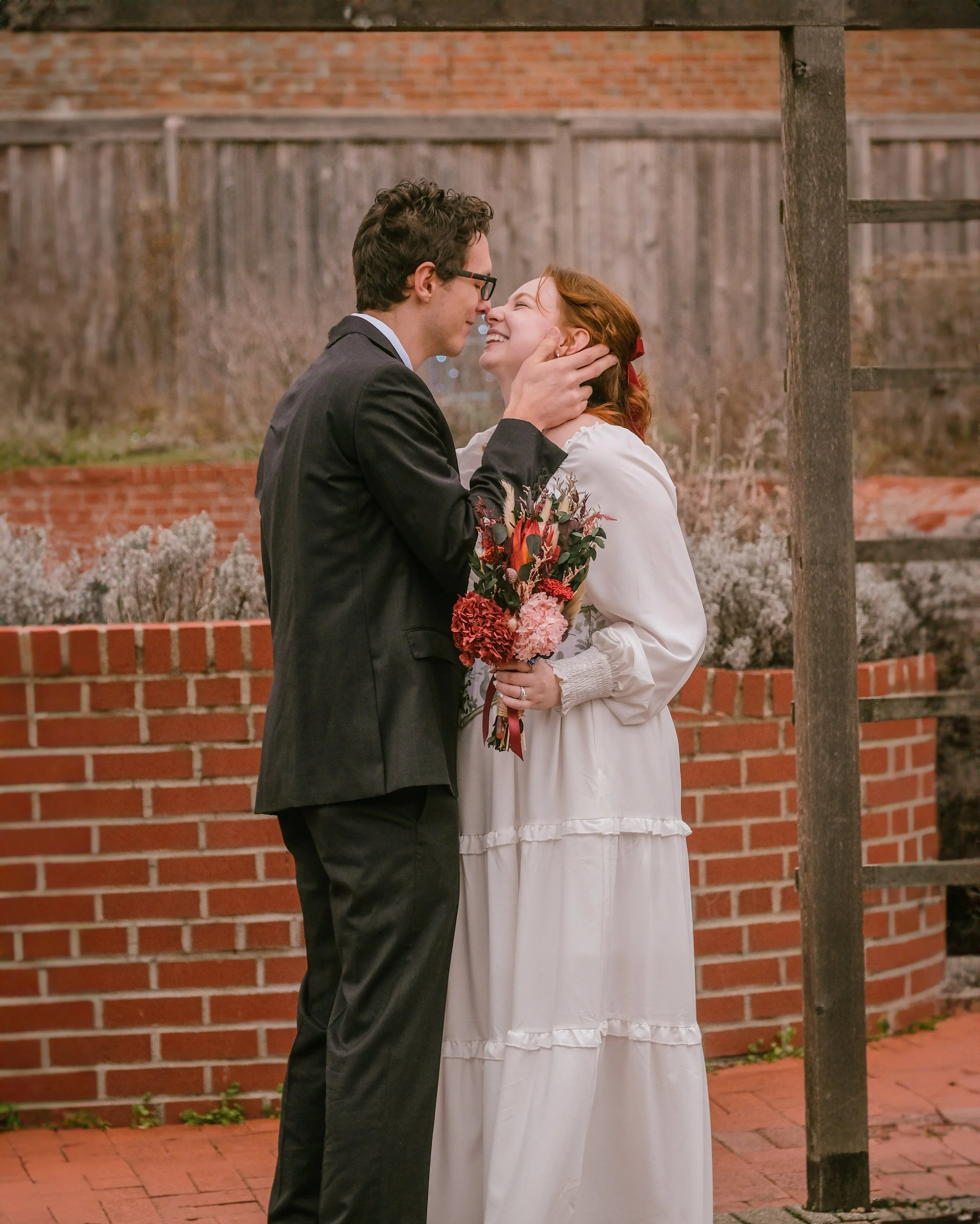 I met my husband, Ben, during our sophomore year of high school through our FFA chapter. We started dating shortly after, and have been inseparable ever since. After eight years of dating and three and a half years of living together, we got engaged and spontaneously decided to elope just a few months later on Christmas Eve in 2024. It was quick, simple, and perfect for us.